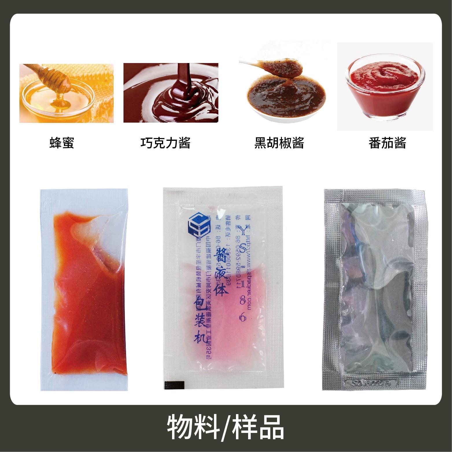 1、適用于番茄醬、咖喱醬、芝麻醬、油包、醋包、油潑辣子等醬料、液體等物品的計量包裝。
