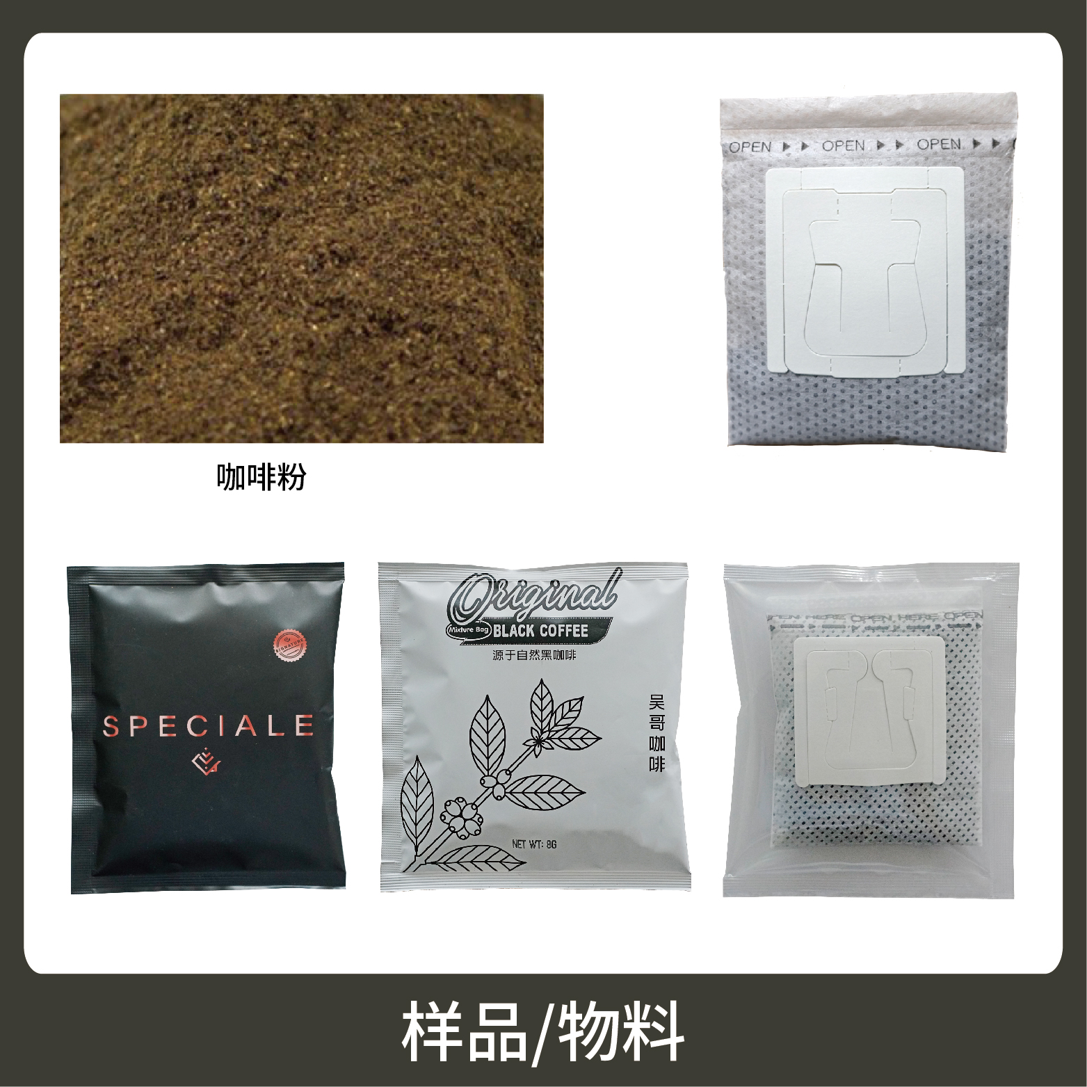 5、包裝材料:尼龍、玉米纖維、掛耳咖啡膜、復(fù)合膜(預(yù)制袋)