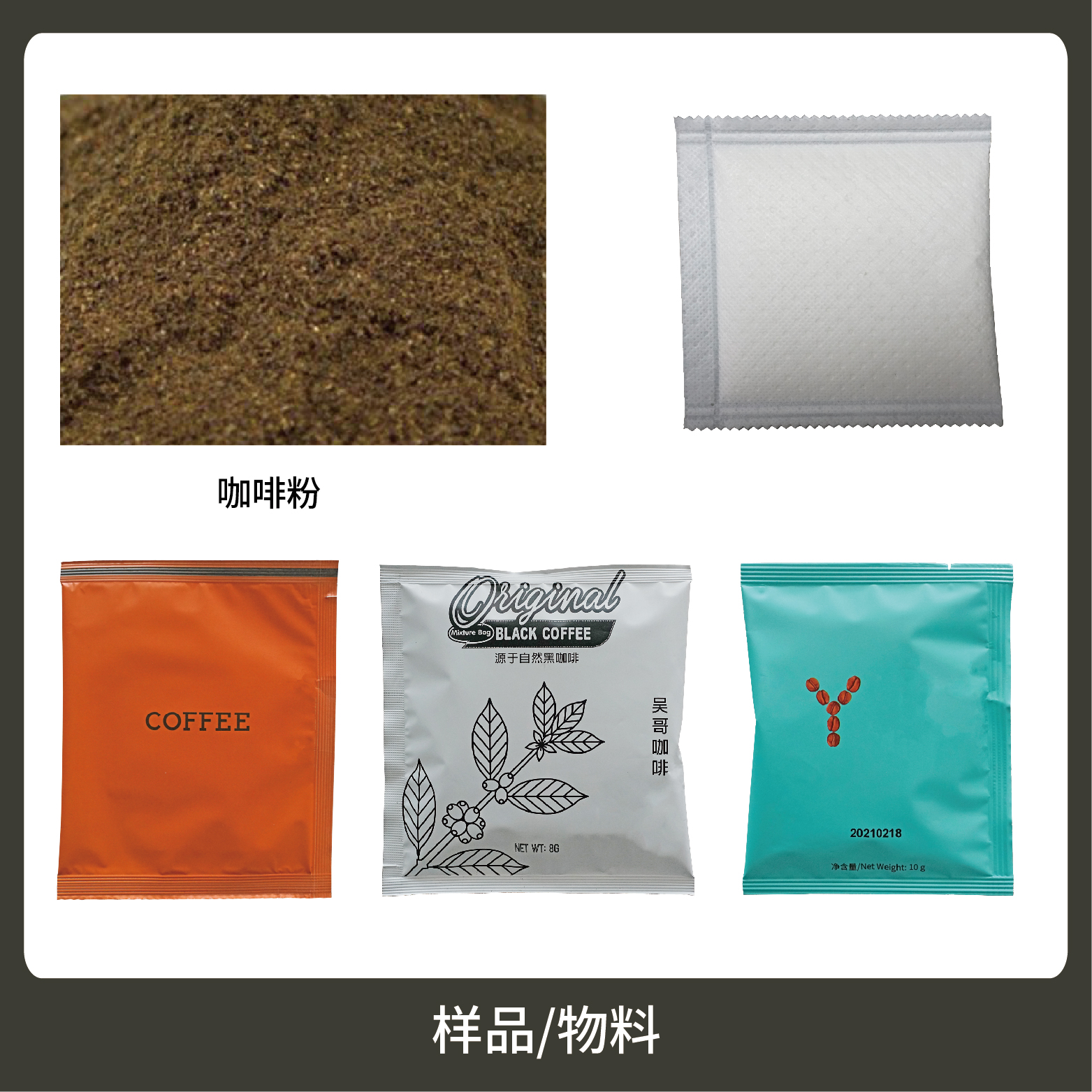 5、包裝材料:復(fù)合膜、尼龍、玉米纖維、掛耳咖啡膜。